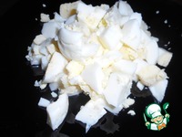 Яйца так же кубиками нарезаем (яйца можно как ингредиент пропустить, всё зависит от Вашего вкуса) |