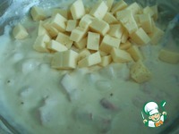 Сыр, так же кубиками, нарезаем. |