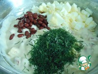 ... фасоль, зелень, яйца, перемешиваем. |