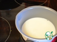 Концентрированное молоко слегка подогрейте и тоже добавьте в тесто. |