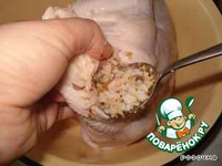 Описание: Сочная, аппетитная курочка, фаршированная рисом, сухофруктами и миндалем.