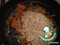 Добавляем изюм, курагу, орехи и обжариваем в масле в течение 5 минут. |