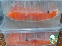 Через сутки рыба готова. Но держать ее в морозилке можно до 3 х месяцев. У меня всегда в морозилке 1-2 контейнера, куски весом 0,5 кг.. |
