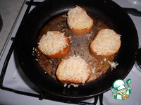 Багет подрумянить на сухой сковороде с обеих сторон до румяного цвета. |