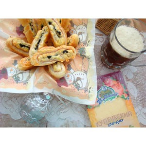 Описание: Мужская закуска к пиву! Ваши мужчины будут вам благодарны! Слойки с Белебеевским сыром "Купеческий", с грудинкой и маслинами. Отлично подойдёт на праздничный стол. Конечно же женщины тоже не откажутся от такой вкусняшки-хрустяшки!