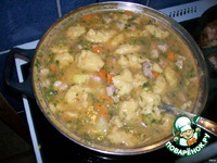 При подаче обязательно посыпать суп мелко резанным зеленым или репчатым луком (я посыпала репчатым, т. к. зеленого не было в наличии). |