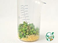 2 г желатина залить 200 мл охлажденного бульона, в котором варился горошек. Приготовить по рецепту. |