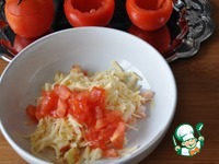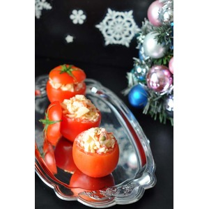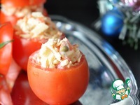 Начиняем салатом помидоры. Подаём блюдо охлаждённым. Всего доброго Вам в Новом году! |