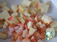 В яблоке удаляем сердцевину, кожуру чистим или оставляем по желанию, режем мелкими кубиками. |