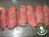 Получившиеся рулетики выложить в смазанную маслом форму для запекания. |