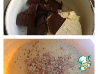 Масло и шоколад растопить на медленном огне и остудить до комнатной температуры. Миндаль промолоть в блендере не очень мелко и добавить к тесту вместе с йогуртом. Перемешать. |