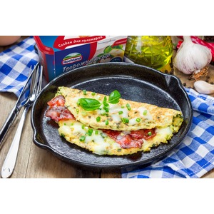 Описание: Превратить привычный омлет в изысканный завтрак не так уж и сложно. Добавьте в омлет нежный творожный сыр Hochland «Для кулинарии» - и необыкновенно вкусный завтрак готов!