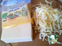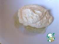 Листовой желатин замочить на 5-7 минут в холодной воде. Затем вынуть из воды и осторожно отжать. Сырную массу добавить в желатин, хорошо размешать. |