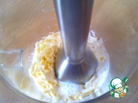 Натертый сыр "Купеческий" и сливки взбить блендером до однородной массы. |