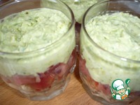 Теперь последним слоем на салат из форели выложить мусс из авокадо. |