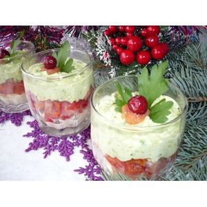 Описание: Веррины – это закуски, которые подаются в маленьких порционных стаканчиках. Если вы хотите удивить своих гостей необычной закуской или просто порадовать себя, попробуйте этот потрясающий рецепт. Классическое сочетание форели, сыра и авокадо - это то, что нужно.