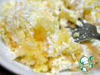 К сыру добавить творог, чеснок, посолить и перемешать. |