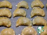 Выкладываем на противень, застеленный пергаментом или ковриком для выпечки, обмазать молоком. |