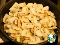 Добавить порезанные грибы. Обжарить 5 минут. |