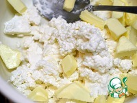 Смешать творог+размягченное сливочное масло |