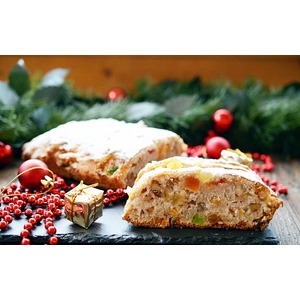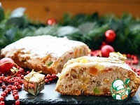 Выпекать в разогретой до 180 градусов духовке 40 минут. Теплый штоллен смазать сливочным маслом, апельсиновым джемом. |