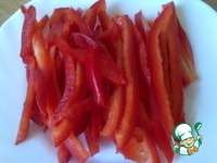 Перец очищаем от семян и режем соломкой. Лучше взять перец красного цвета. |