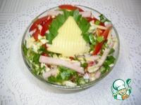Описание: Сырный салат с ветчиной и овощами на праздничном столе, пожалуй одно из популярных украшений любого торжества. Очень вкусный рецепт салата без майонеза. Готовится просто и быстро.