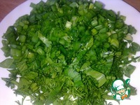 Мелко нарезать зелень: зеленый лук, петрушку, укроп. |
