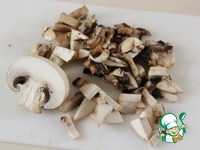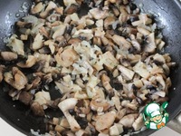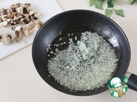 Добавить грибы к луку, обжарить вместе минут 5. |