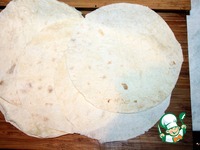 Лаваш нарезать на 8 кругов диаметром 20 см. |