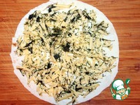 Смешать его с мелко нарезанным укропом, выложить на круг лаваша. |