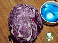 Из краснокочанной капусты выжать сок, я его немного разбавила водой и положить туда вареный белок на 15 минут для окраски. |
