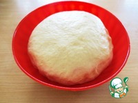 Готовое тесто скатываем в шар и укладываем в миску, накрываем полотенцем и оставляем в теплом месте на 1.5 часа.