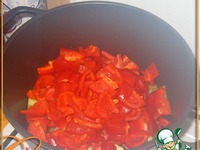 В казанке разогреть масло, кинуть туда перчик и обжаривать на среднем огне до полу готовности |