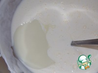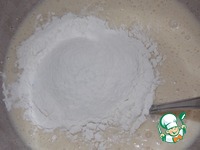 Всыпать муку, перемешать. Должно получится однородное тесто, по консистенции как густая сметана. |
