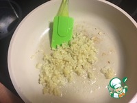 На разогретую сковородку налить масло и добавить чеснок. Обжарить до слегка золотистого цвета. |