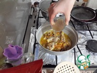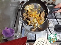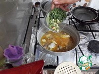 Отделяем от бульона 2 стакана для каши. Добавляем крупу и варим до готовности. |