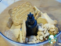 1. Для "земли" сложить печенье и орехи в чашу блендера, измельчить в крошку. |