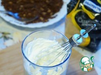 4. Оставшиеся сливки хорошо взбить до густоты и пышности. Когда шоколадно-сахарная масса почти остынет, всыпать в неё рубленные орехи и аккуратно ввести взбитые сливки. |
