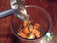 Все ингредиенты смолоть блендером, добавив а процессе сливочное масло, бульон, тимьян и розмарин. |