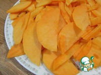 Тыкву освободить от кожуры и семян. Нарезать тонкими слайсами. |