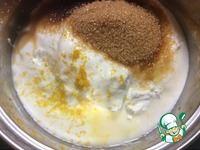 Творог, йогурт, сахар, цедру и сок лимона взбить до получения гладкой массы. Творог должен быть кремообразным без крупинок. |