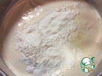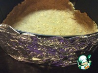 Выливаем нашу смесь в форму с печеньем. Сверху форму накрываем фольгой. |