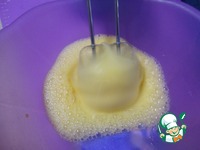 Яичная масса остыла, взбить масло и по ложке добавлять яичную заварную массу, каждый раз хорошо взбивая |