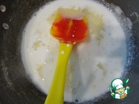 Крем-в сотейнике смешать сахар с яйцом, добавить молоко, довести до кипения непрерывно помешивая, варить пять минут. |
