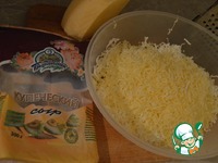 Натираем на терке сыр, я использовала в этом рецепте Купеческий. |