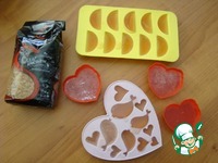 Тоненькой струйкой, постоянно помешивая, вливаем агар-агар во вторую половину газировки с сиропом. Готовим формы для мармелада. |