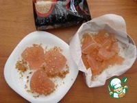 Немного сахара разбила в ступке и пересыпала мармелад. |