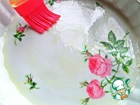 Керамическую форму смазать обильно растительным маслом. Диаметр моей формы 24 см, высота 4 см. |