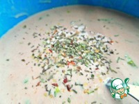 Присыпать ложкой сыра и парой щепоток средиземноморских трав. |